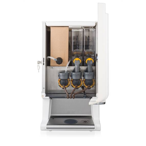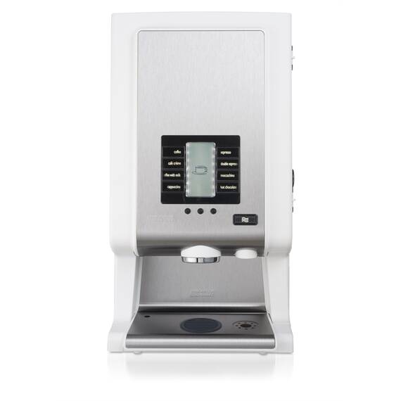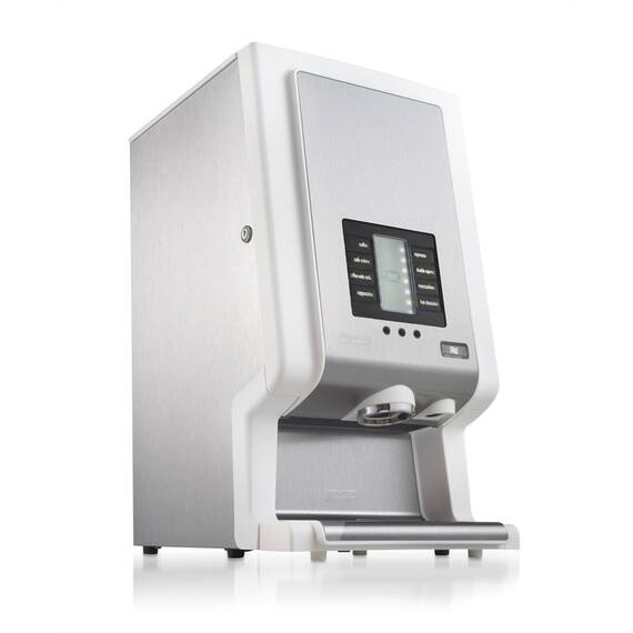 Heißgetränkebereiter für BIB-Systeme (bag-in-box) auf Basis von Flüssigkonzentraten und wasserlöslichen Instantzutaten. Mit Wasseranschluss. Ausgestattet mit beleuchtetem Display, Tropfblech, Entkalkungsanzeige, Reinigungs- und Entkalkungsprogramm.Die kompakte Kaffeemaschine Rivero 12 ist hervorragend für Umgebungen geeignet, in denen schnell mal eine Tasse Kaffee serviert werden muss. Diese Maschine kann 1 Bag-in-Box-Verpackung und 2 Instantzutaten aufnehmen. Insgesamt kann die Rivero 12 bis zu neun unterschiedliche Getränke servieren. Dank der Gebrauchsfreundlichkeit und intuitiven Bedienung ist die Rivero 12 die ideale Kaffeemaschine für z. B. mittelgroße Büros und Einzelhandelsläden. Modell für 1 BIB Behälter für Flüssigkonzentrat (Kaffee) und 2 Produktbehälter (Trinkschokolade, Topping) für insgesamt 9 verschiedene Getränke: Kaffee, Kaffee Crème, Espresso, Wiener Melange, Cappuccino, Café au Lait, Latte Macchiato, Trinkschokolade und Heisswasser. Stärken Übersichtlich gestaltetes Bedienfeld mit LED-Beleuchtung.Hohe Ausgabeleistung dank ventillosem Heißwassersystem.Wartungsfreundlich dank automatischer Entkalkungsanzeige.Energiesparsamer Thermoboiler und einstellbarer Energiesparmodus.Patentierte Zutaten-Mischbecher von Bravilor Bonamat beugen Verstopfungen vor und optimieren den Zutatenstrom.Anpassung der Getränkeeinstellungen ganz nach Wunsch.Hergestellt aus hochwertigen Edelstahl-Materialien.